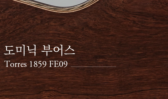 이 우아한 악기는 1859년에 제작된 Torres의 초기작품(FE09)을 복원한 것으로 당대 최고의 기타리스트 중 하나인 Miguel Llobet이 소유했던 작품입니다. 현재 원본악기는 스페인 바르셀로나 음악 박물관에 보관 전시되고 있습니다.
