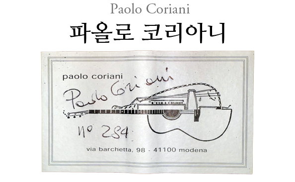 이탈리아에서 제작 활동 중인 파올로 코리아니는 19세기와 20세기 초의 스페인 기타에 특별한 관심을 가지고 있습니다. 그는 1993년 호세 루이스 로마닐료스의 기타 메이킹 코스에 참여하면서 세고비아가 연주회에 사용했던 마누엘 라미레즈(1912년)를 만나게 됩니다. 이 악기는 코리아니에게 무한한 영감을 주는 존재이자 제작 인생의 목표가 됩니다.
