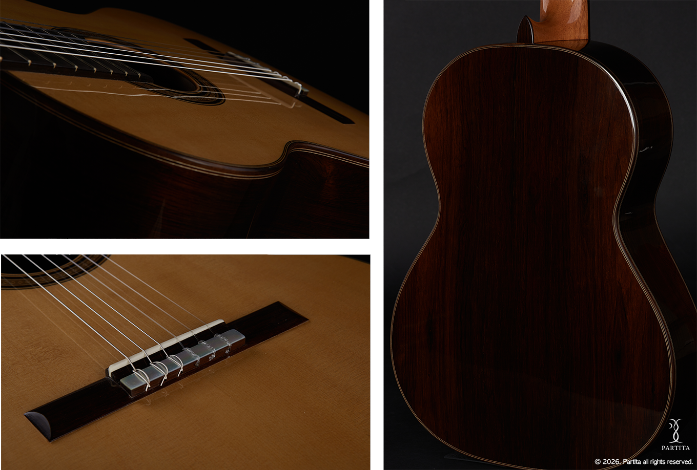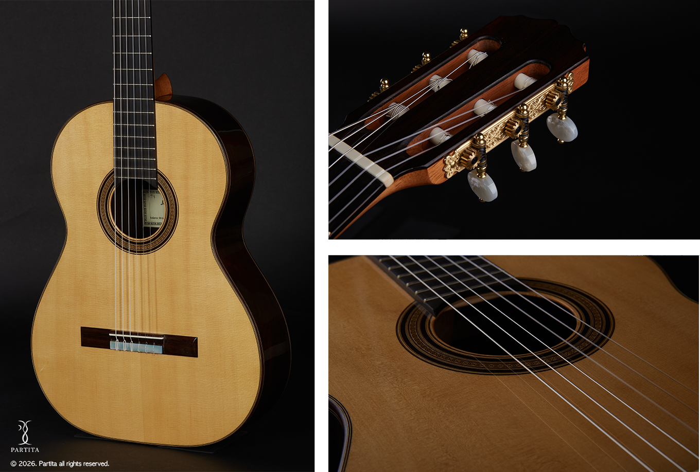 스페인 기타에서 가장 중요한 제작가 중 한 명인 산토스 헤르난데즈 1924년 작품을 복원한 기타입니다. 비교적 가벼운 무게감과 깊고 따듯한 음색을 지니고 있습니다. 명확한 분리도, 한음 한음 밀도감과 힘있는 소리는 전통적인 스페인 악기의 특징을 잘 담아냈습니다.
