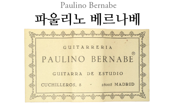 스페인 마드리드의 기타 제작가 파울리노 베르나베는 기타 제작가들 사이에선 엘리트로 통합니다. 그는 원래 기타 연주자를 꿈꾸던 사람으로, 타레가의 제자인 다니엘 포르테아와 함께 기타 레슨을 받았지만 이 기간 동안 기타를 만드는 데 더 큰 흥미를 느끼고 기타 제작의 도제생활을 시작하게 되었습니다. 경험과 실력이 쌓여감에 따라 유명한 라미레즈의 공방 수석 장인의 자리에 오를 수 있게 되었는데 바로 기타리스트 세고비아가 라미레즈의 기타를 사용하기 시작하던 때였습니다. 37세가 되던 1969년, 베르나베는 라미레즈 공방을 나와 마침내 마드리드에 자신의 이름을 내건 공방을 차리게 되었습니다.